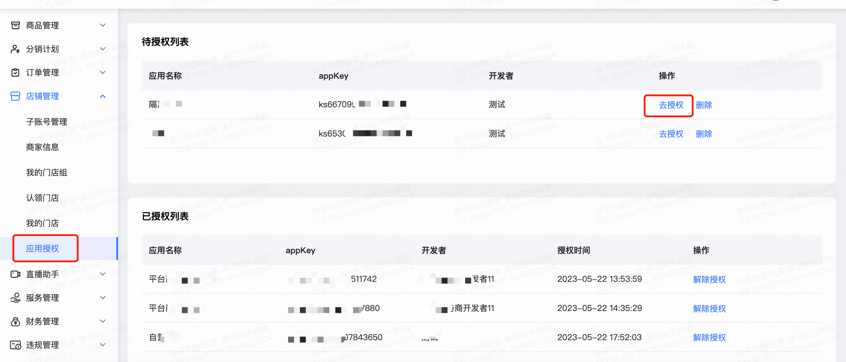 商家使用快手商家主账号在 PC 端(https://lbs.kwailocallife.com/)商家中心-店铺管理-应用授权下操作“去授权”,或在 APP 内我的店铺-生活服务-商家应用-应用授权下操作“去授权”,将跳转到授权页面。