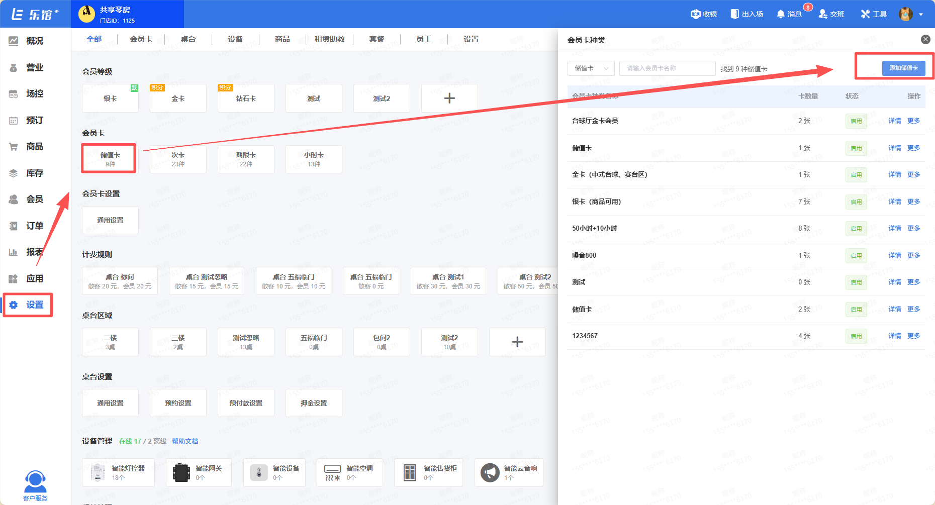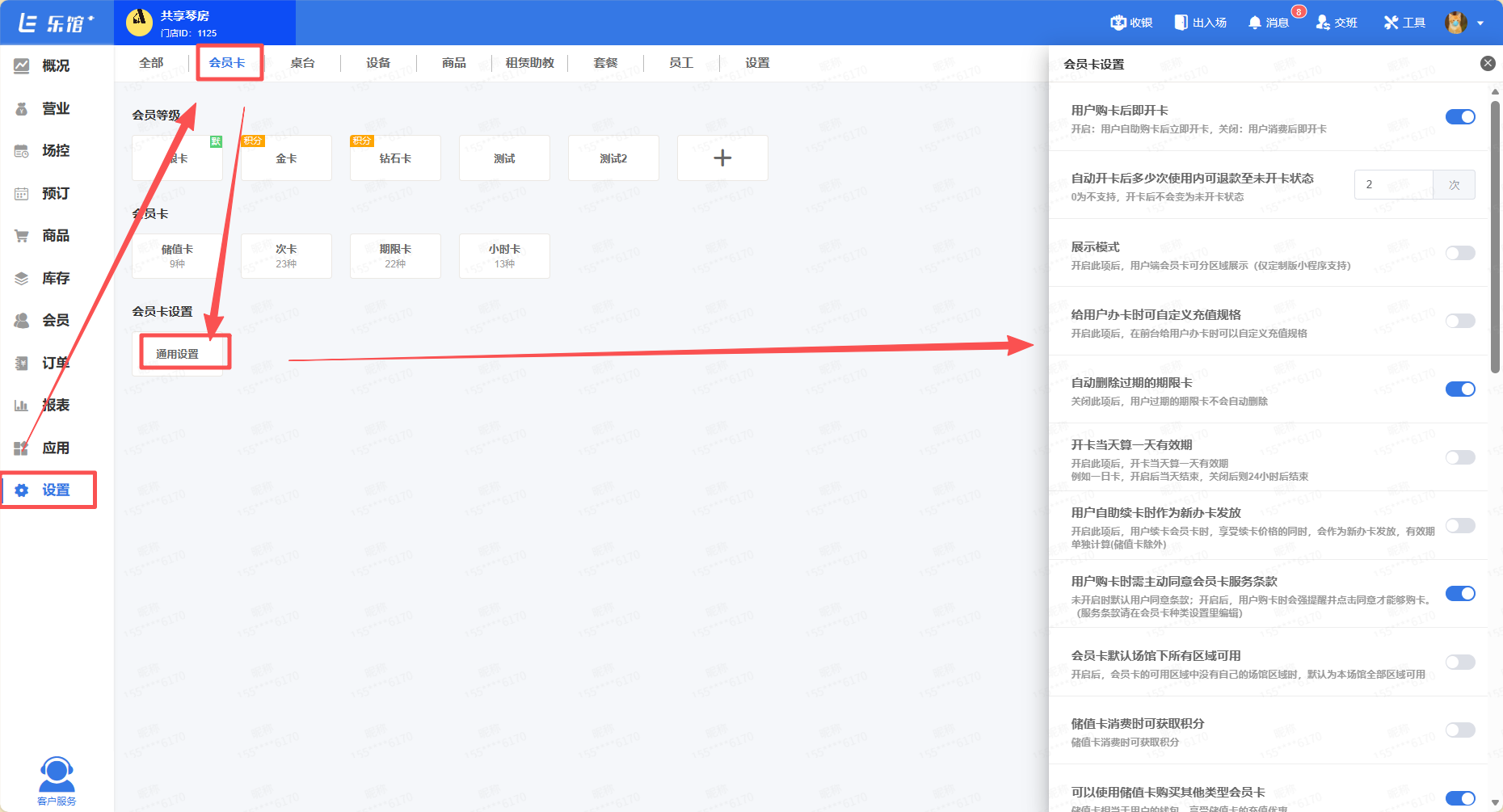 点击”设置”—”会员卡”,进入会员卡设置界面