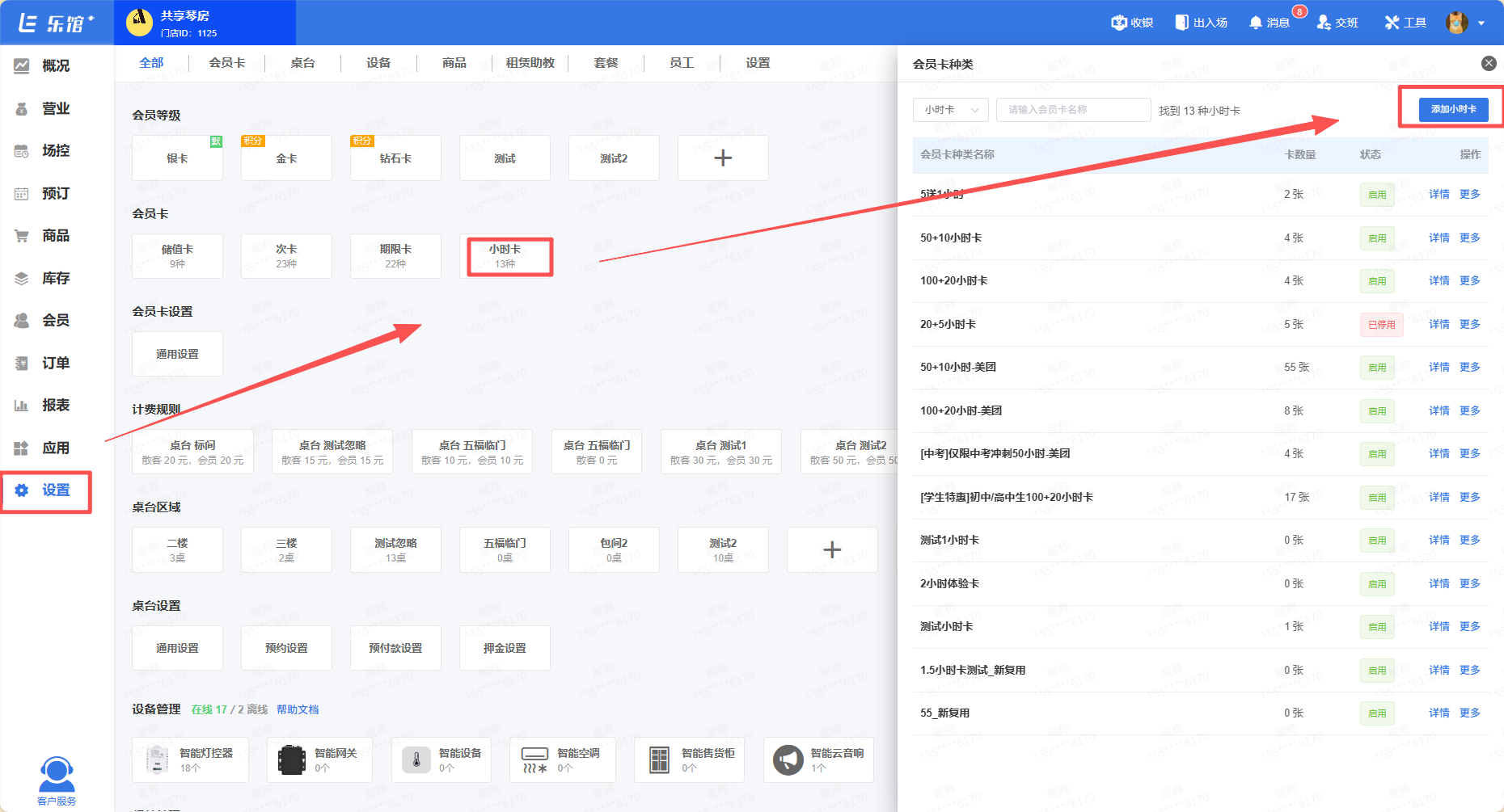 点击小时卡弹出界面点击”添加小时卡”。根据需求填写完整信息。